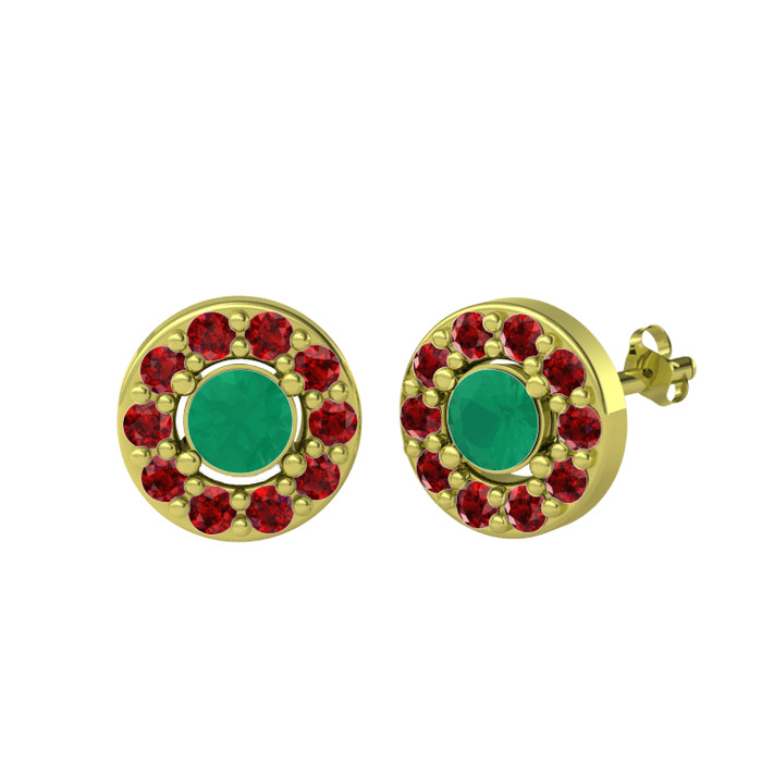 Kök zümrüt ve garnet 925 ayar altın kaplama gümüş küpe