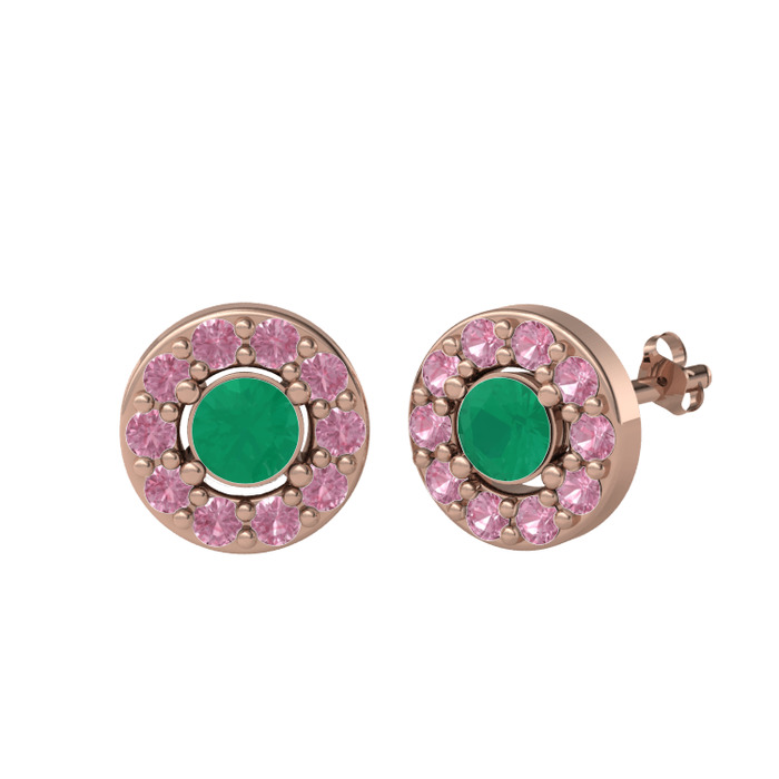 Kök zümrüt ve pembe kuvars 925 ayar rose altın kaplama gümüş küpe