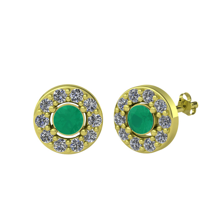 Kök zümrüt ve pırlanta 14 ayar altın küpe (0.72 karat)