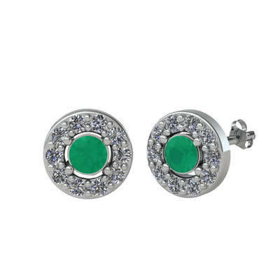 Kök zümrüt ve pırlanta 14 ayar beyaz altın küpe (0.72 karat)