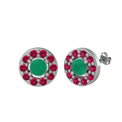 Kök zümrüt ve rodolit garnet 8 ayar beyaz altın küpe