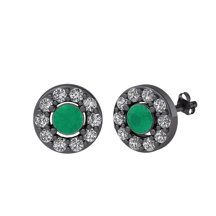 Kök zümrüt ve swarovski 925 ayar siyah rodyum kaplama gümüş küpe