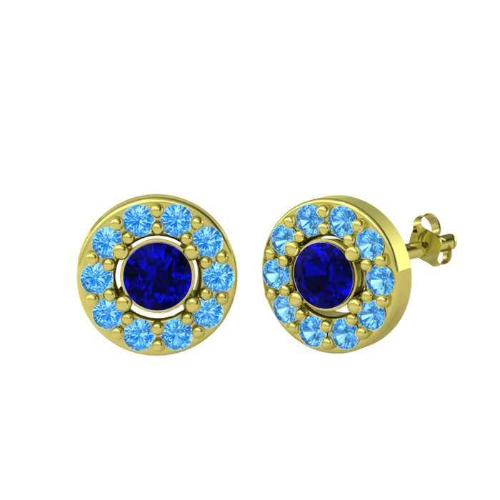 Lab safir ve akuamarin 8 ayar altın küpe