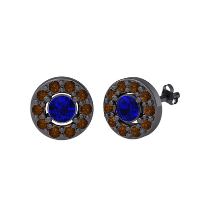 Lab safir ve dumanlı kuvars 925 ayar siyah rodyum kaplama gümüş küpe