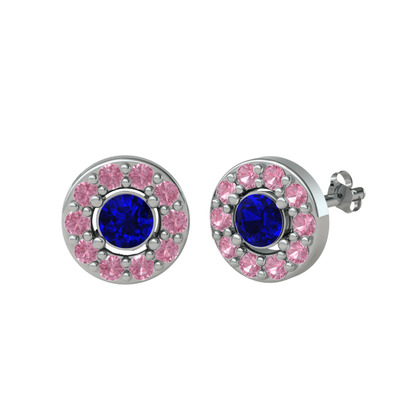 Lab safir ve pembe kuvars 14 ayar beyaz altın küpe