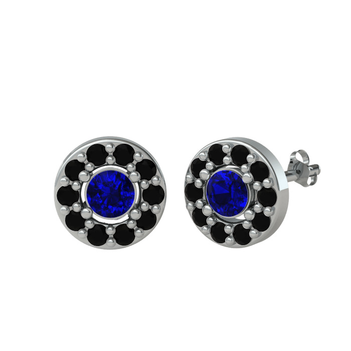 Lab safir ve siyah zirkon 8 ayar beyaz altın küpe