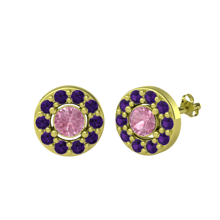 Pembe kuvars ve ametist 925 ayar altın kaplama gümüş küpe