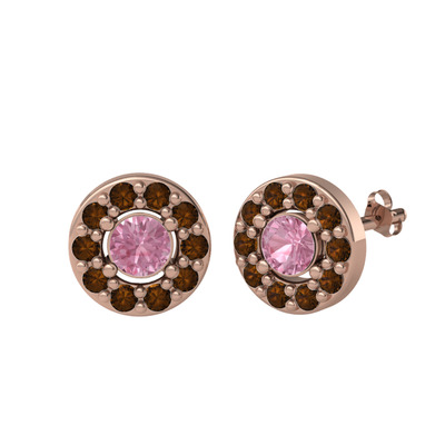 Pembe kuvars ve dumanlı kuvars 8 ayar rose altın küpe