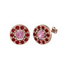 Pembe kuvars ve garnet 8 ayar rose altın küpe