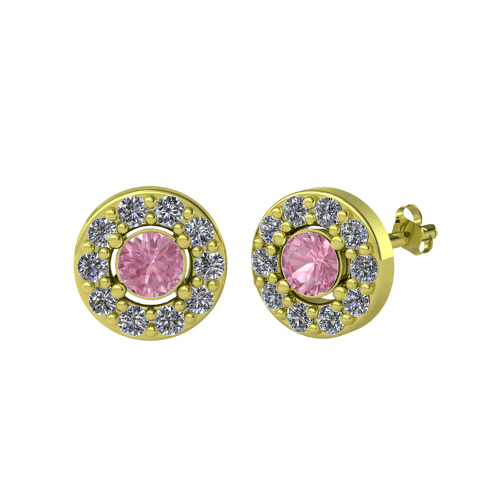 Pembe kuvars ve pırlanta 925 ayar altın kaplama gümüş küpe (0.72 karat)