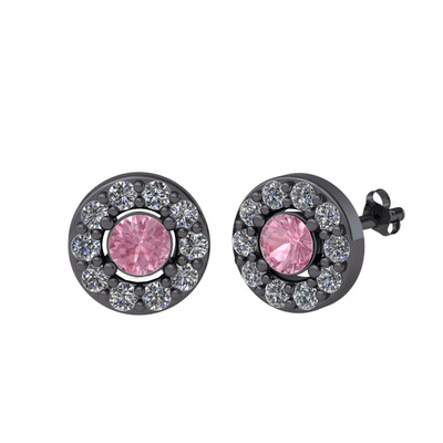 Pembe kuvars ve pırlanta 925 ayar siyah rodyum kaplama gümüş küpe (0.72 karat)