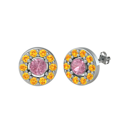 Pembe kuvars ve sitrin 14 ayar beyaz altın küpe