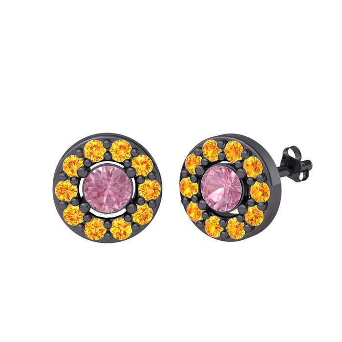 Pembe kuvars ve sitrin 925 ayar siyah rodyum kaplama gümüş küpe