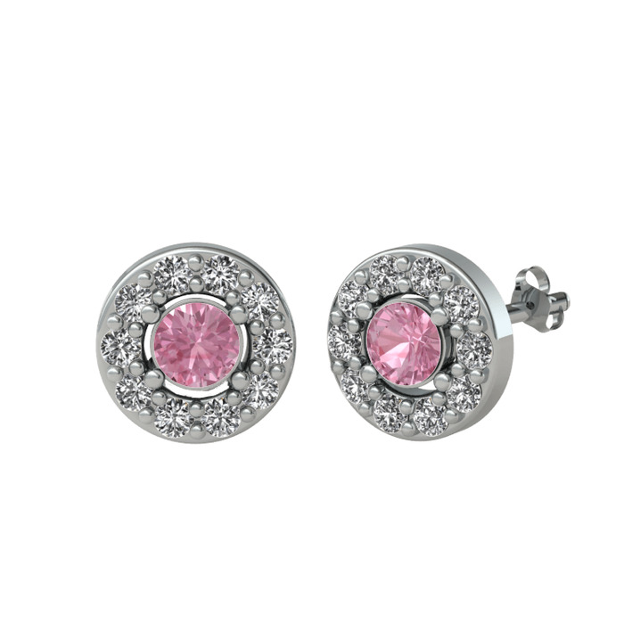 Pembe kuvars ve swarovski 14 ayar beyaz altın küpe