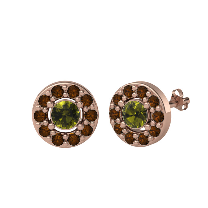 Peridot ve dumanlı kuvars 925 ayar rose altın kaplama gümüş küpe