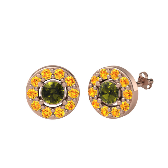 Peridot ve sitrin 925 ayar rose altın kaplama gümüş küpe