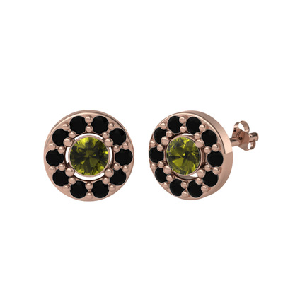 Peridot ve siyah zirkon 14 ayar rose altın küpe