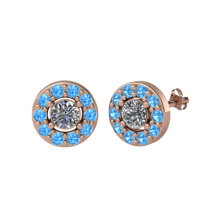 Pırlanta ve akuamarin 925 ayar rose altın kaplama gümüş küpe (1 karat)
