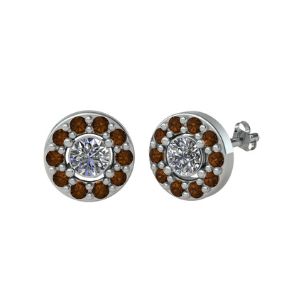 Pırlanta ve dumanlı kuvars 14 ayar beyaz altın küpe (1 karat)