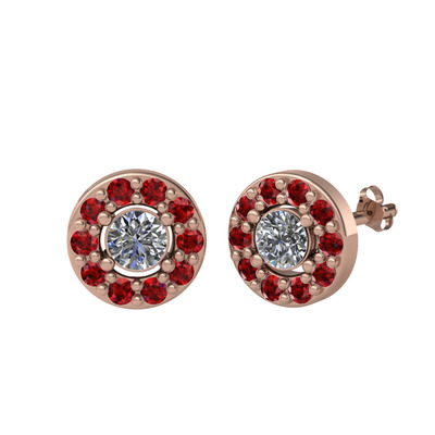 Pırlanta ve garnet 925 ayar rose altın kaplama gümüş küpe (1 karat)