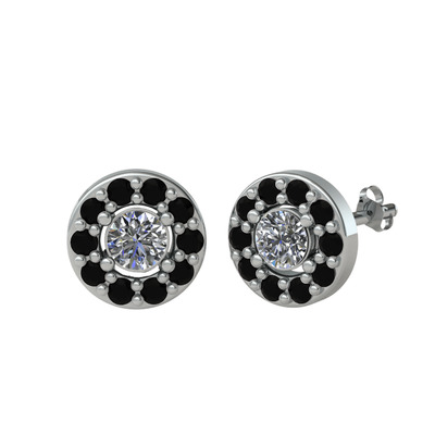 Pırlanta ve siyah zirkon 18 ayar beyaz altın küpe (1 karat)
