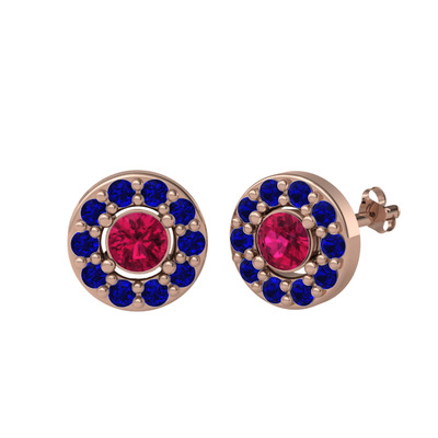 Rodolit garnet ve lab safir 14 ayar rose altın küpe
