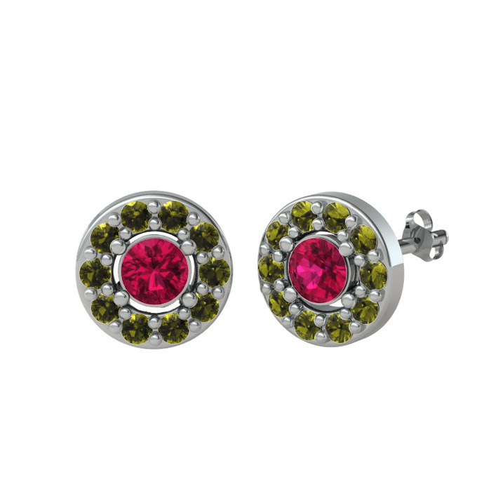 Rodolit garnet ve peridot 8 ayar beyaz altın küpe