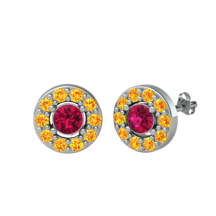 Rodolit garnet ve sitrin 8 ayar beyaz altın küpe