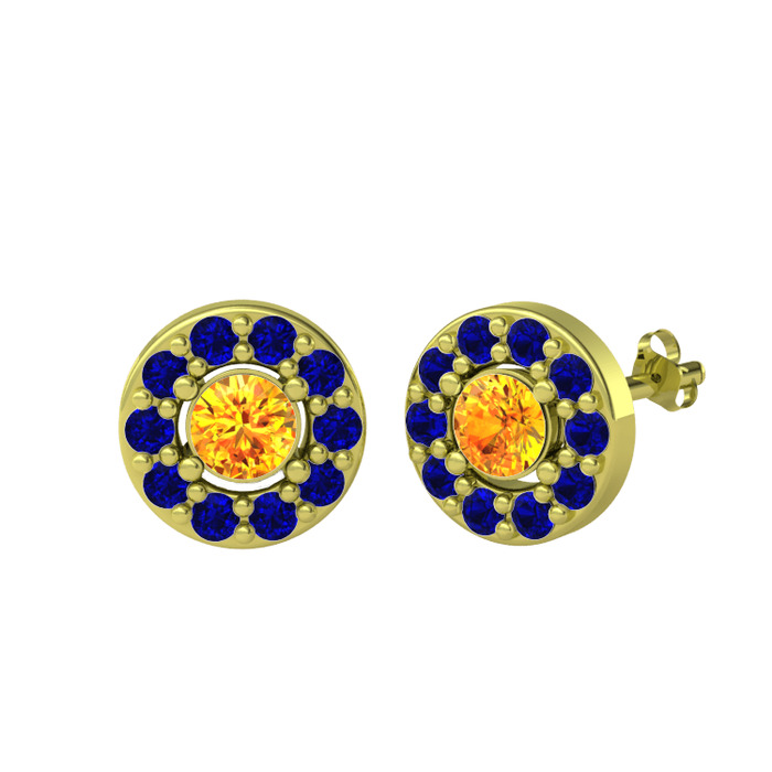 Sitrin ve lab safir 14 ayar altın küpe