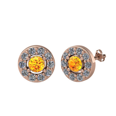 Sitrin ve pırlanta 8 ayar rose altın küpe (0.72 karat)