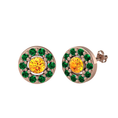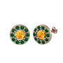 Sitrin ve yeşil kuvars 18 ayar rose altın küpe