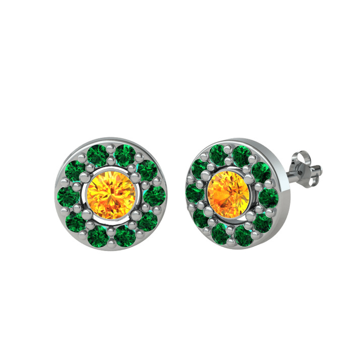 Sitrin ve yeşil kuvars 925 ayar gümüş küpe