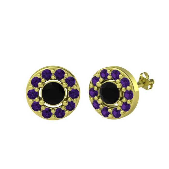 Siyah zirkon ve ametist 18 ayar altın küpe