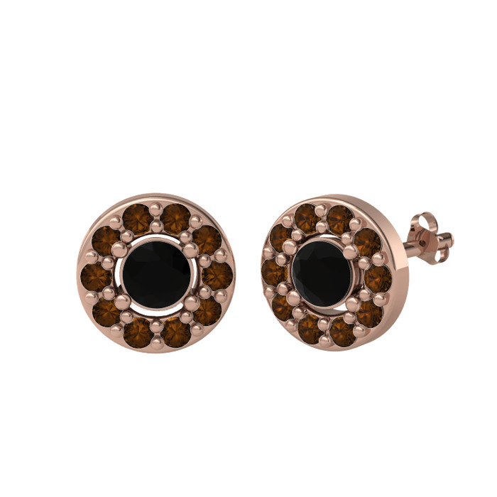 Siyah zirkon ve dumanlı kuvars 14 ayar rose altın küpe