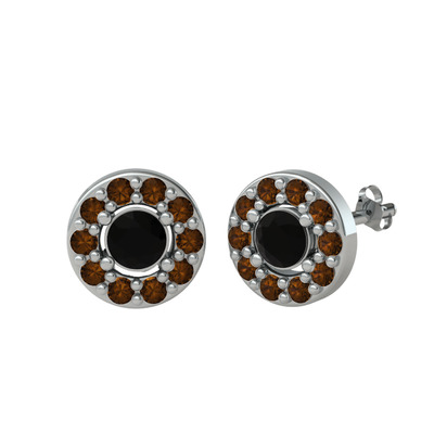 Siyah zirkon ve dumanlı kuvars 925 ayar gümüş küpe