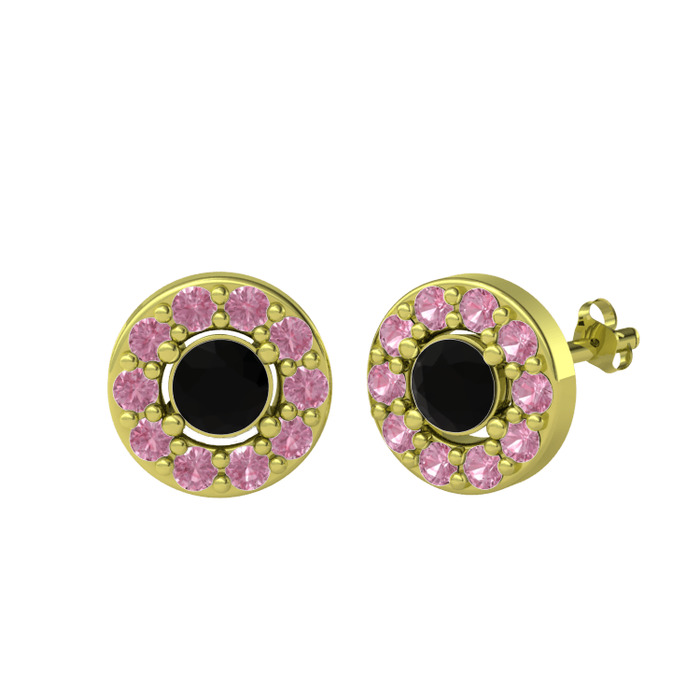 Siyah zirkon ve pembe kuvars 18 ayar altın küpe
