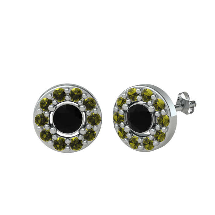 Siyah zirkon ve peridot 14 ayar beyaz altın küpe