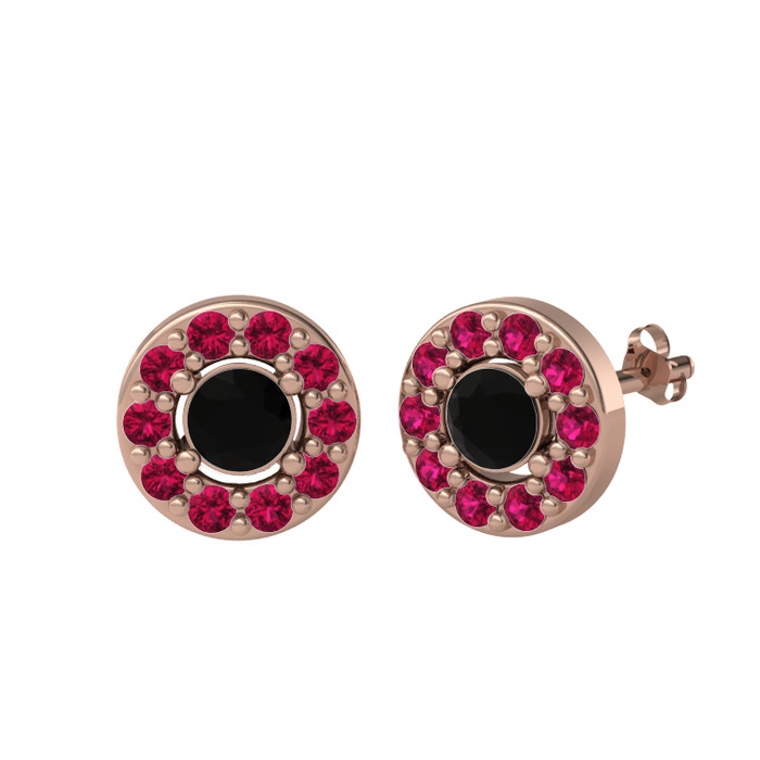 Siyah zirkon ve rodolit garnet 14 ayar rose altın küpe