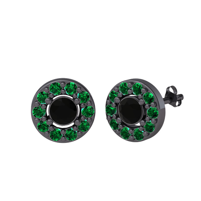 Siyah zirkon ve yeşil kuvars 925 ayar siyah rodyum kaplama gümüş küpe