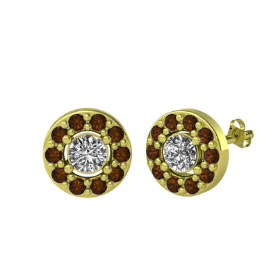 Swarovski ve dumanlı kuvars 18 ayar altın küpe