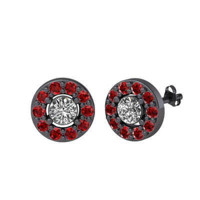 Swarovski ve garnet 925 ayar siyah rodyum kaplama gümüş küpe