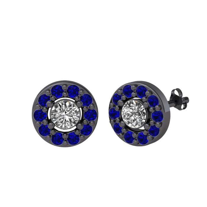 Swarovski ve lab safir 925 ayar siyah rodyum kaplama gümüş küpe
