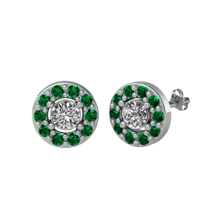 Swarovski ve yeşil kuvars 14 ayar beyaz altın küpe