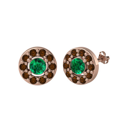 Yeşil kuvars ve dumanlı kuvars 18 ayar rose altın küpe