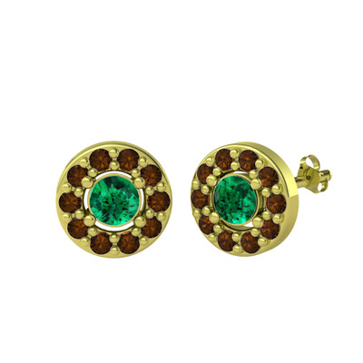 Yeşil kuvars ve dumanlı kuvars 925 ayar altın kaplama gümüş küpe