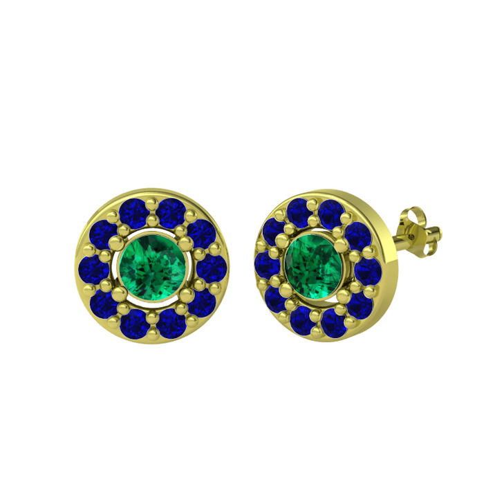 Yeşil kuvars ve lab safir 925 ayar altın kaplama gümüş küpe