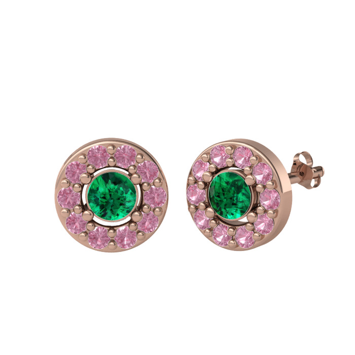 Yeşil kuvars ve pembe kuvars 8 ayar rose altın küpe