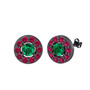 Yeşil kuvars ve rodolit garnet 925 ayar siyah rodyum kaplama gümüş küpe