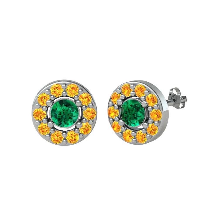 Yeşil kuvars ve sitrin 14 ayar beyaz altın küpe
