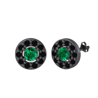 Yeşil kuvars ve siyah zirkon 925 ayar siyah rodyum kaplama gümüş küpe